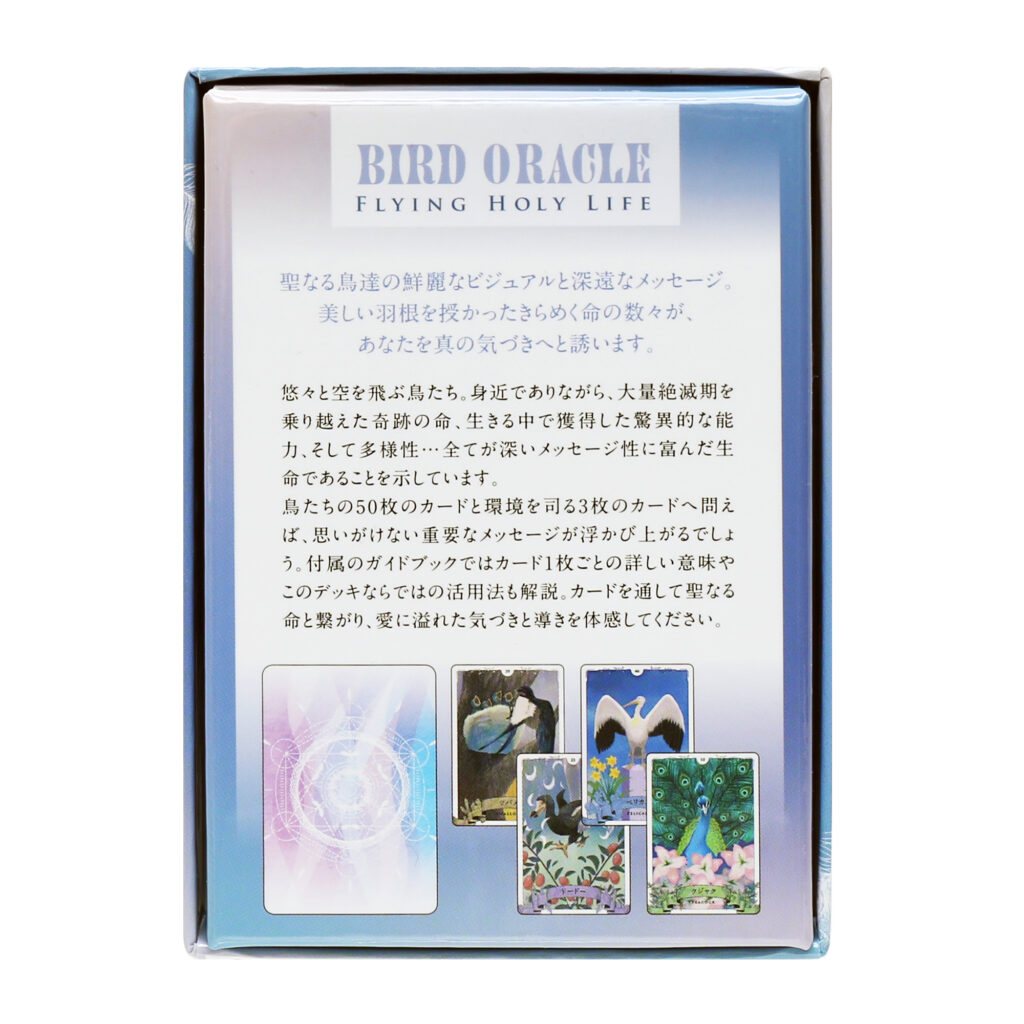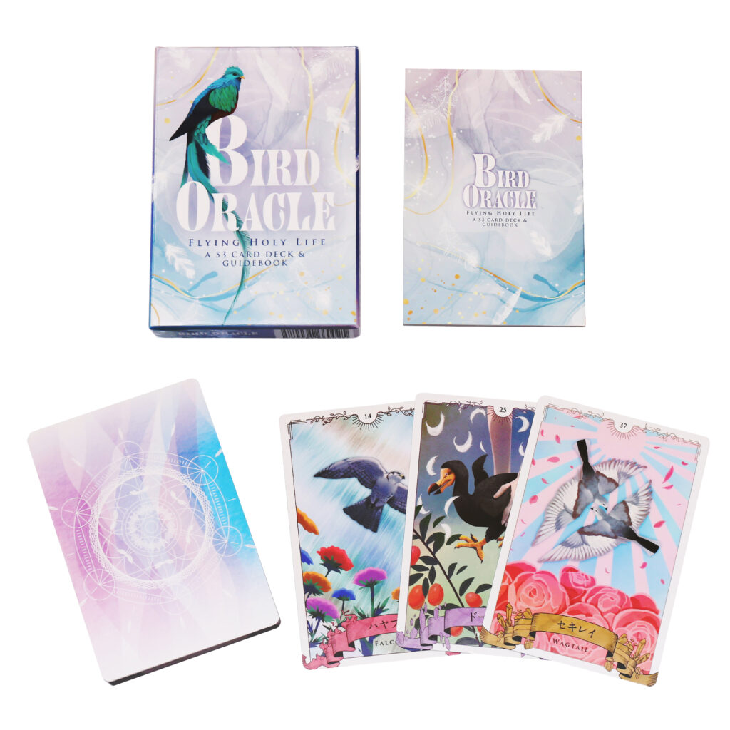 このオラクルカードデッキは美しい鳥たちの50枚のカードと環境を司る3枚のカードで構成されています。