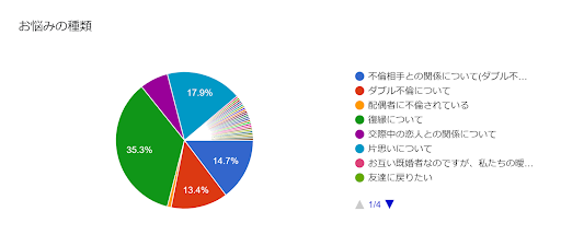 お悩みトップ3は上記で合計66.6%が復縁や不倫などの難しい恋愛の悩みとなっています。